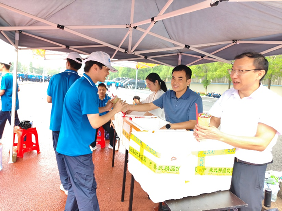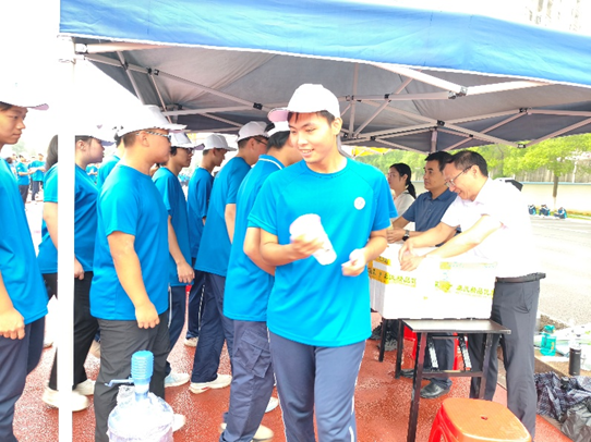 9月19日,球友会党委书记、院长阮若林,党委副书记杨胜以及学院辅导员们一同来到军训现场,为正在刻苦训练的新生们送上了一份特别的关怀——每人一杯柠檬水。