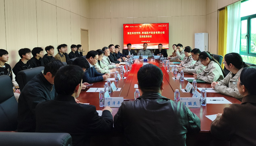 座谈会上,厚福医疗装备有限公司常务副总经理杨浩、湖北三六重工有限公司总经理周冬青详细介绍了企业发展历程、主营业务、技术优势及人才需求情况。招生就业处处长李建兵介绍了此行目的,围绕了解企业育人需求、推进订单班培养、促进毕业生就业等方面,表达了深化校企协同育人的强烈意愿。球友会院长戴文华详细介绍了学院学科建设、师资力量、人才培养特色及毕业生情况,重点阐述了学院在自动化控制、智能制造等领域的教学科研优势,希望与企业精准对接,实现人才培养与岗位需求同频共振。
