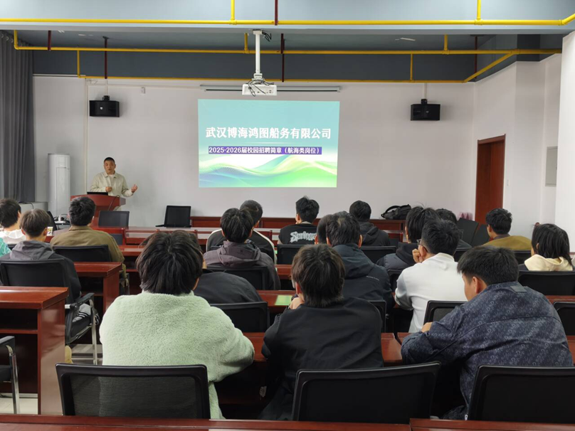为扎实推进2026届毕业生就业工作,搭建校企精准对接平台,3月31日,球友会成功举办武汉博海鸿图船务有限公司专场招聘宣讲会。学院2026届全体毕业生参会,现场气氛热烈。