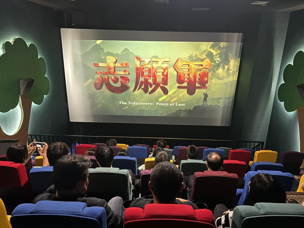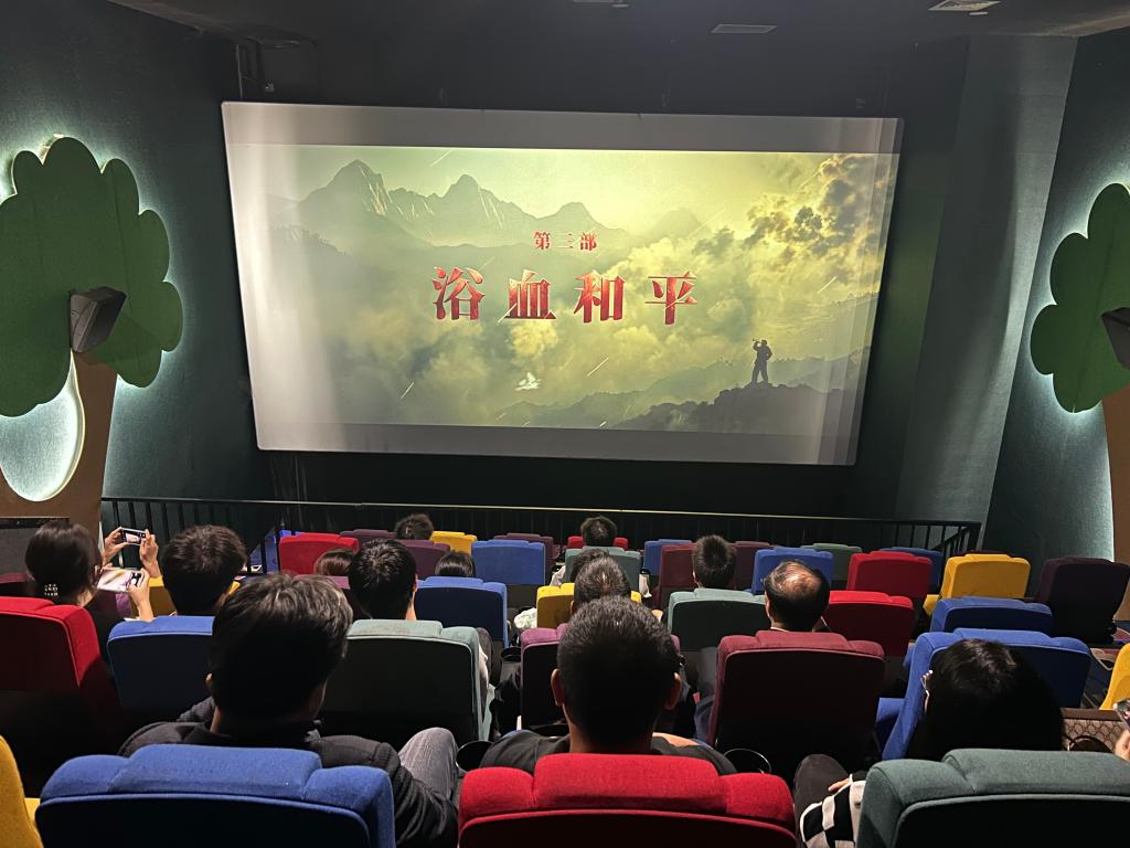 为庆祝中华人民共和国成立76周年,深化爱国主义教育,传承伟大抗美援朝精神,10月16日下午,球友会党委组织全体师生党员、入党积极分子代表30余人开展“光影铸魂”主题观影活动,集体观看红色影片《志愿军:浴血和平》。影片以抗美援朝战争“边打边谈”747天的历史为背景,通过战场硝烟与谈判桌前的双重叙事,再现了志愿军将士以血肉之躯保家卫国、捍卫和平的壮烈历程。